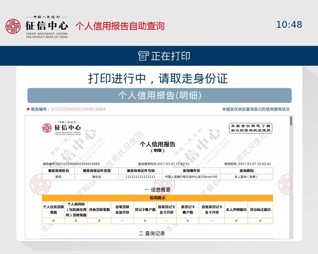 当查询费用缴纳完毕,或者查询本人报告未超过两次,在报告查询成功后,即可预览个人信用报告。系统将同步打印报告。