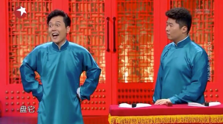 将这个词发扬光大的来源是孟鹤堂和周九良,他们在《相声有新人》中表演了节目《文玩》,以盘玩物为主题,讲述了一个老头子盘石头盘沙皮犬盘一切的故事(依据传统这个老头子必然是捧哏的爸爸),而“盘它”这句高频台词也因此成为了流行语。
