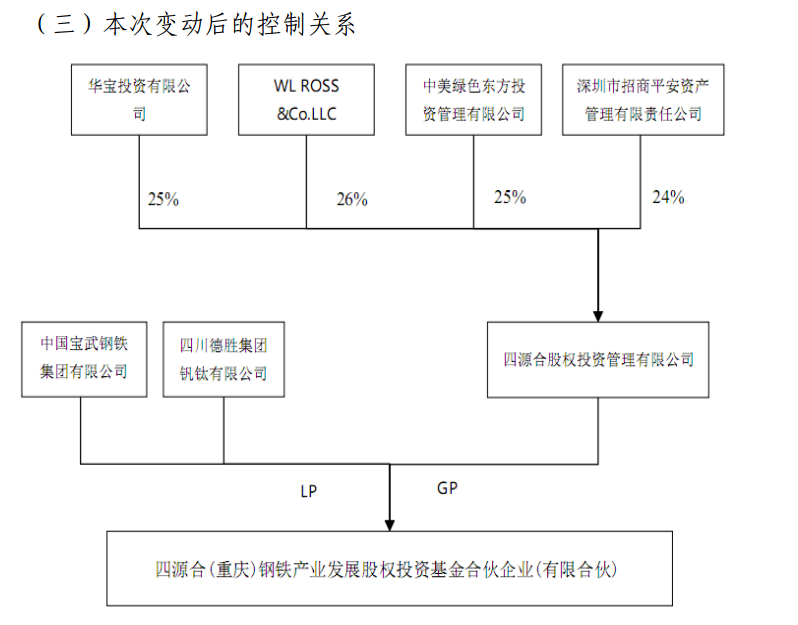 由于长寿钢铁持有重庆钢铁23.51%的股份,为上市公司第一大股东,重庆钢铁的间接控股股东因此易主,变成四源合重庆基金。
