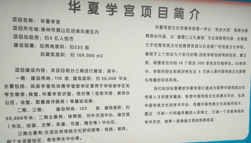 “双方签订协议之后,将在徐州市地方政府的大力支持下,利用各自资源优势,强强联手,以’华夏学宫’项目为先发,逐步搭建以大型传统文化传承为内容的公益平台。”双方官网显示。