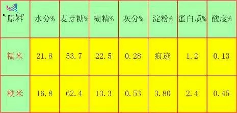 不同原料生产的饴糖化学成分(笔者制表,数据来自文献【3】)