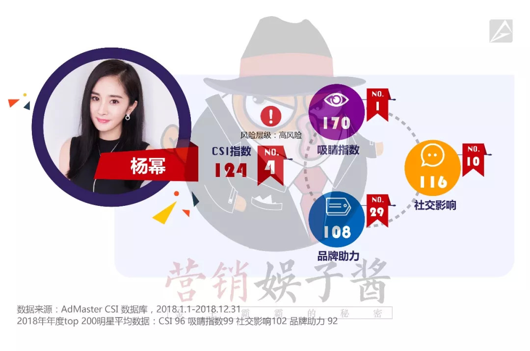深陷税务风波的范冰冰更是根本没有登上榜单,尽管其在吸睛指数、社交影响和品牌助力三项评判标准上都有着高数值,但她过高的风险指数直接超过了一般的风险评测标准,让商业价值大幅度缩水。