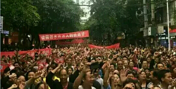 据中新社5月16日报道,为实现几辈人的“火车梦”,四川广安市邻水县部分群众走上街头,并聚集在广安市政府大楼前,要求设计中的达渝城际铁路经过该县。