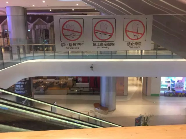 当然,在国内大部分购物中心,国家并未强制安装防护网等设施,商场也有权利按照国家规范进行合理设计,至于电梯处、栏杆处等危险地方,商场可以加装安全提示牌,不过对于自身本就不遵守道德规范的父母个故意为之的人来说,可能也是无济于事。