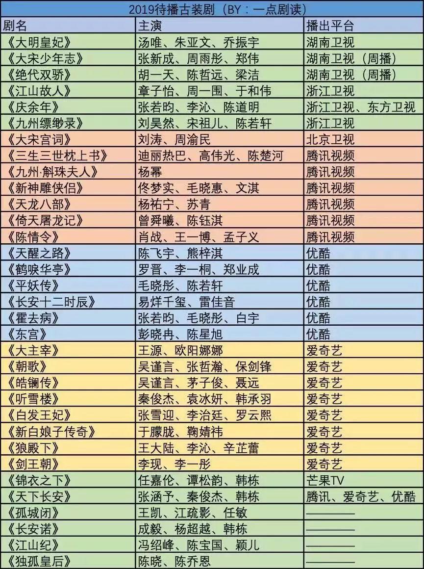 值得一提的是,在这待播的34部古装剧当中,当前仅有7部古装剧正式定档卫视,且有两部古装剧将以“周播”的方式在卫视播出,剩余近2/3古装剧全部转战视频网剧。这意味着2019年的古装剧市场排播份额,已经到了刻不容缓的地步。未来,或许有更多的古装剧将面临“难以上星”的尴尬局面。