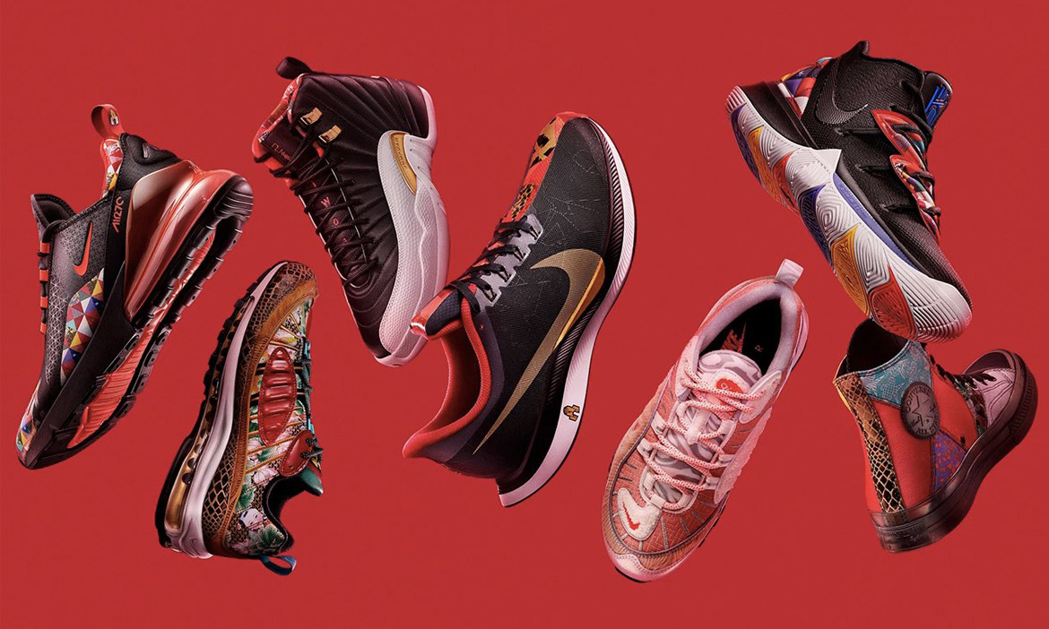通常,品牌们的新年限定都是将某一款式改造成特别单品。耐克今年却选择了做那抹不一样的烟火:一口气推出包括Air Jordan XXXIII、KYRIE 5、Air Max 98、Air Max 90、Zoom Pegasus Turbo、Converse Chuck Taylor、Air Jordan XII、Air Vapormax 2019、Blazer Low等在内,共9款明星鞋型的新春系列。这一系列从十二生肖和百家衣等中国传统民俗文化中汲取灵感,不管是常见的金红色混搭,还是各种吉祥花纹组合,相信你一定能从中找到最适合自己的那款。