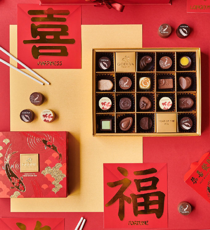 GODIVA 新年巧克力礼盒包含杏味黑巧克力、柠檬味牛奶巧克力和百香果味巧克力三款口味不同的单品,酸甜味被带入苦涩、柔密的口感中,十分独特。对了,巧克力消灭干净后,礼盒也别急着扔掉。常看看盒子上画着的锦鲤图案,说不定比在微博上“转发这条锦鲤”更容易转运。