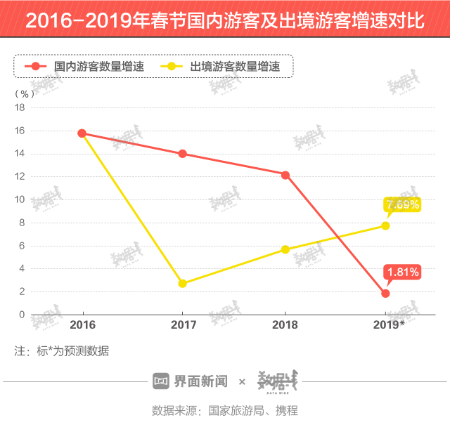 虽然价格贵,但是越来越多的人选择春节到异国看一看。按携程预计数据计算,2019年春节出境游客增速将达7.69%,远超国内游客增速。