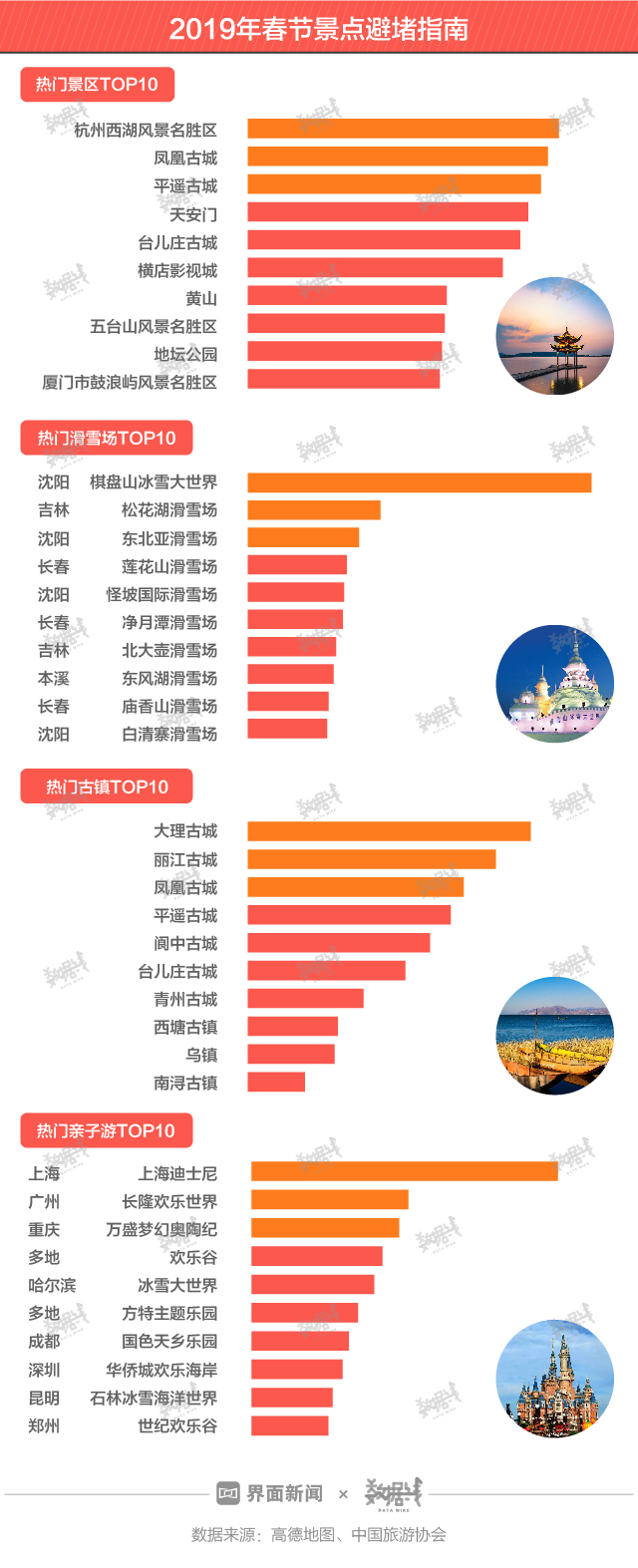无论去国内还是国外,都避不开堵。根据高德地图数据,2019年春节最热门的景点是杭州西湖,最受欢迎的古镇是大理古城,上海迪士尼是最热门的亲子游目的地。