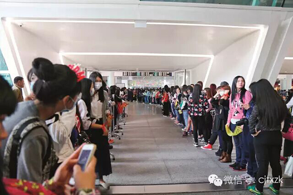 人群中多为女性,平均年龄在二十几岁,自称“四叶草”,每人手中拿着几件印有明星名字的商品或道具,上面大都印有英文“TFBOYS”——中国内地最红火的偶像组合之一,由三名平均年龄只有15岁的男孩组成——队长王俊凯出生于1999年,另外两位成员王源和易烊千玺出生于2000年。这些从全国各地赶来的粉丝们,只为在现场近距离接触和支持这几位“小”明星。