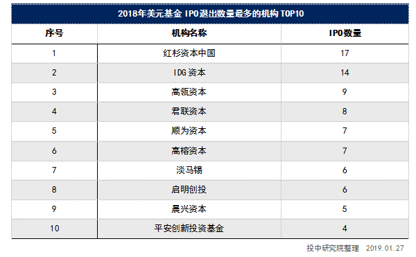 美元基金IPO退出数量最多的机构:红杉资本中国