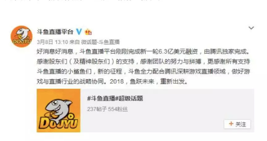 当然,对于斗鱼而言,虽然IPO没有落地,但在2018年年初拿下了6.3亿的融资,也是其在这一年在内容上持续发力的底气。