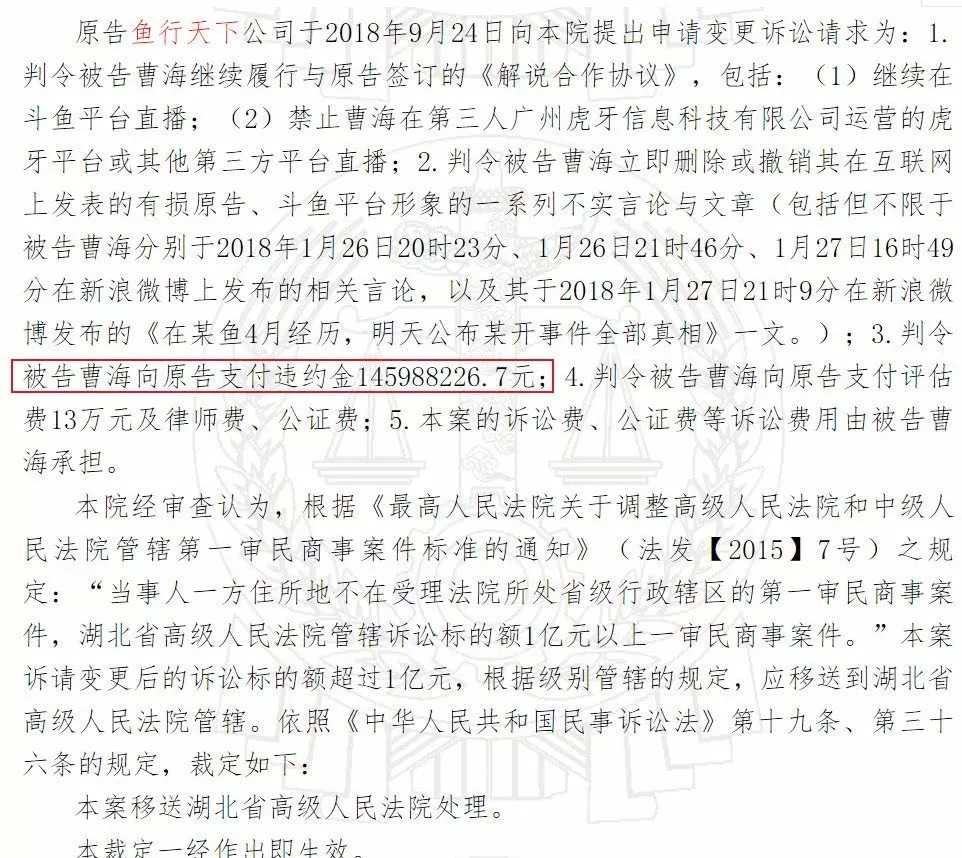 2018年最惨的大主播蛇哥就这样诞生了。原本就官司缠身的蛇哥colin。2018年初开始背负斗鱼4000万和虎牙2400万双方平台的巨额违约金。在2018年9月,斗鱼又向法院提出更改了诉讼要求,内容总结如下:不允许在斗鱼以外的直播平台进行直播;删除曾发出的针对斗鱼的不当言行并道歉;提高赔偿至145988226.7元,并承担一切其他费用。