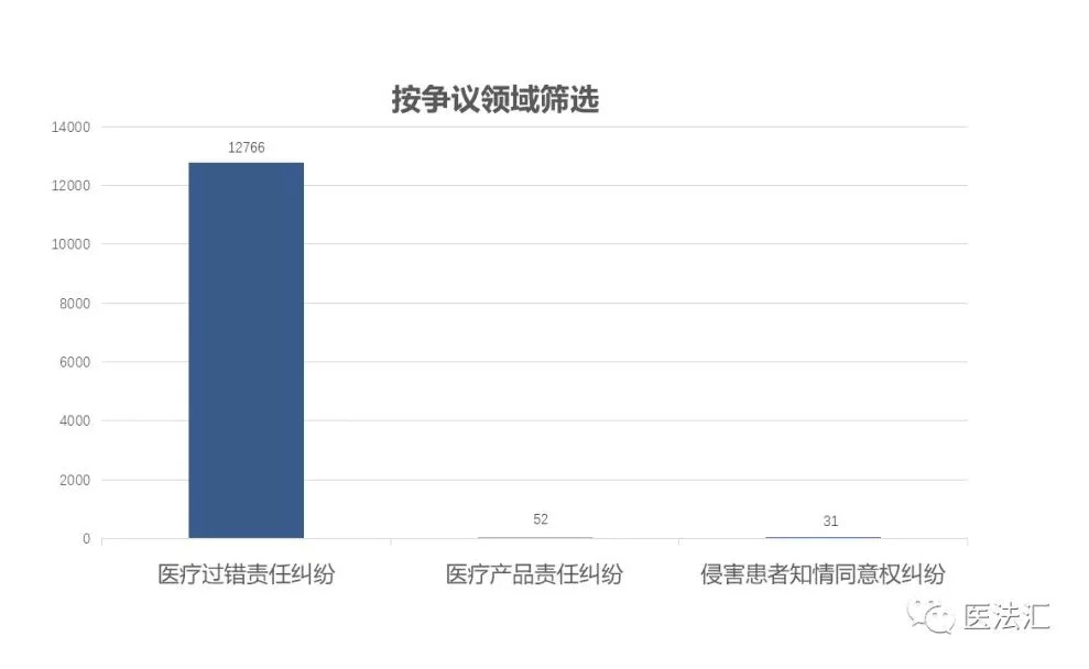 据案例数据库显示,医疗损害责任纠纷案件的争议领域,可以分为医疗过错责任纠纷、侵犯患者知情同意权纠纷和医疗产品责任纠纷。2018年医疗损害责任纠纷案件共计12849件,比2017年的12753件略有上升。其中医疗过错责任纠纷12766件,侵害患者知情同意权纠纷31件,医疗产品责任纠纷52件。医疗产品责任纠纷的案件数量与2017年的32件相比,案件数量有所增长。