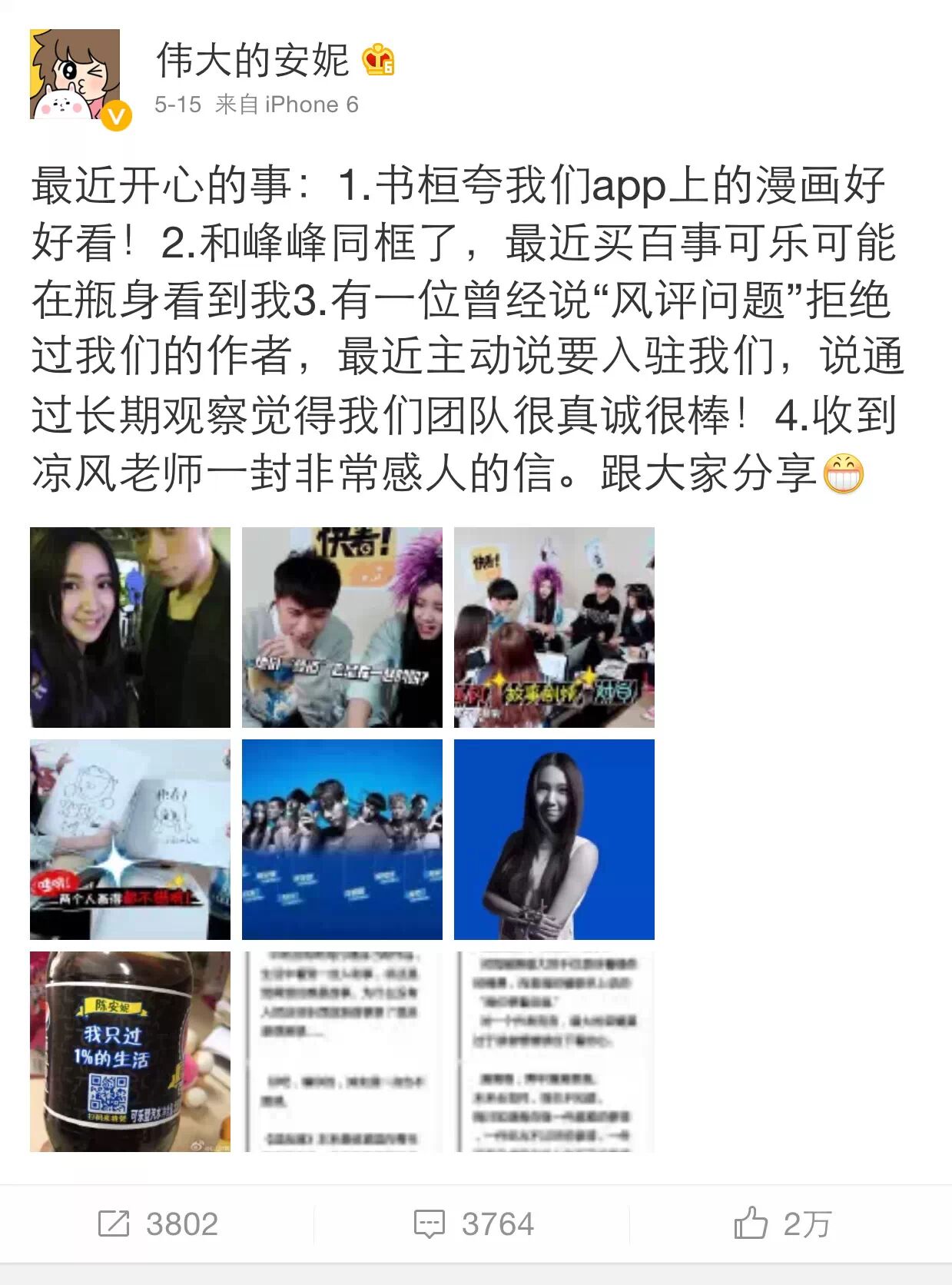 百事可乐,你确定找了陈安妮后还能有100件快乐的事情么?估计也只剩下1%的快乐了!