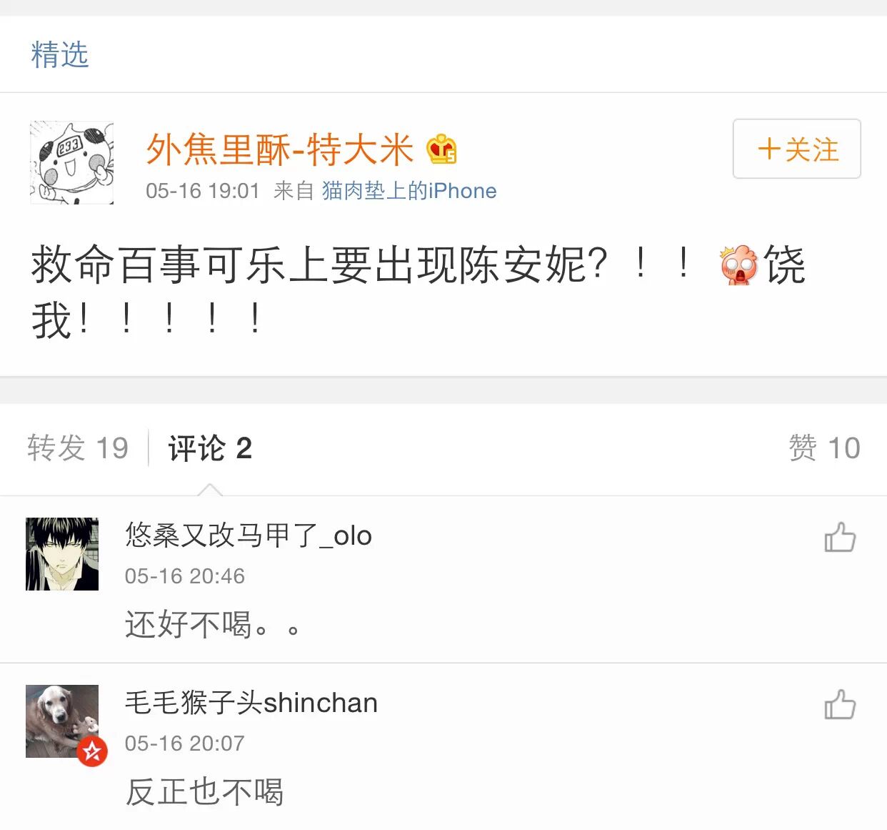 其实呢,明星是可以用的,在娱乐营销争奇斗艳的今天,一定得是“娱乐+品牌”的捆绑营销才是王道。显然百事在这点是水土不服的,因为只会用明星,品牌social起来比较生硬,不接地气。