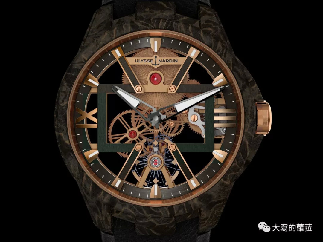 △ 雅典镂空X腕表,碳金(Carbonium GOLD)表壳,直径43毫米,UN-371手动上链机芯,储能96小时。