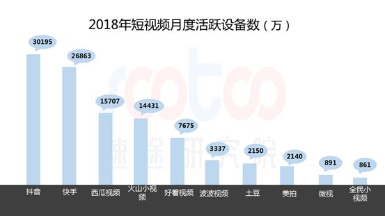 据统计显示,在2018年12月,短视频行业月度活跃设备中,抖音以3.02亿的月活跃设备数保持第一,这也是自6月份以来抖音月活跃用户数超过快手后,持续保持领先地位。目前头条系已经形成以抖音,西瓜视频和火山小视频为主的短视频矩阵,并依靠精准的定位,吸引了不同的人群,最大化的占领了市场。