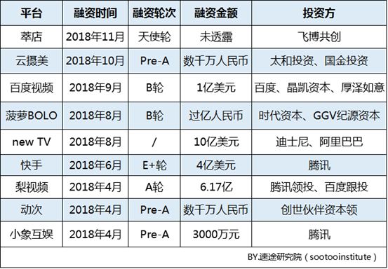 短视频领域融资