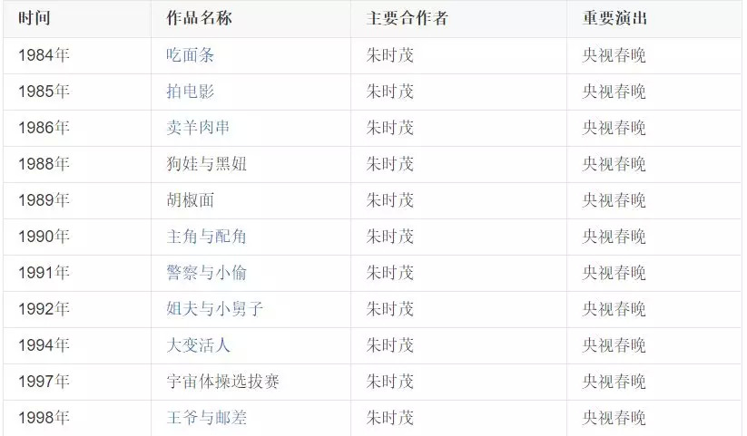 1984年的春晚,陈佩斯和朱时茂表演了小品《吃面条》,开始王者之路。在随后的十四年中,二人数次搭档,演绎了许多经典的作品:《主角与配角》、《警察与小偷》、《羊肉串》、《宇宙体操选拔赛》……