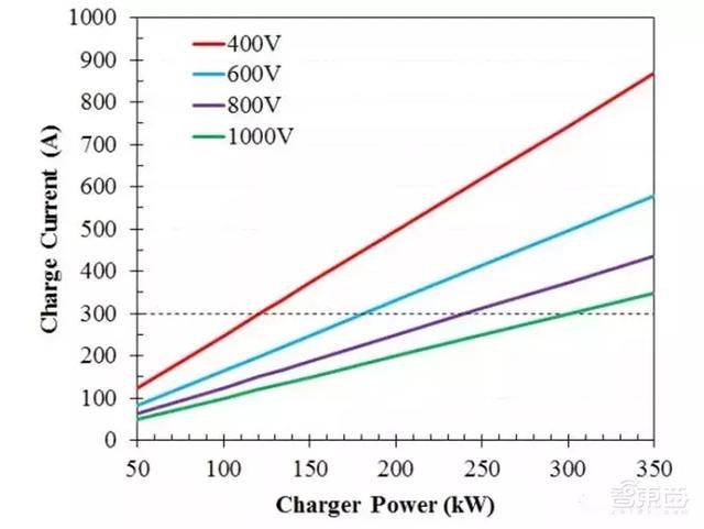 目前国内常见电动汽车的电压平台多在400V左右,即其电机、电池、电控等相关系统的工作电压均在这个范围。因此想要在400V电压平台下实现350kW的大功率快充,其车内电流就要达到350kW/400V=875A,而目前电动汽车内部线路能够承受的电流则多在250A左右。