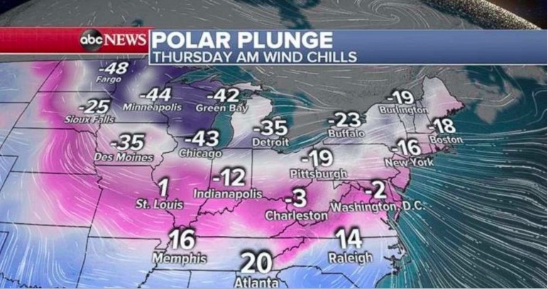 未来几天,美国的极寒天气还将继续恶化。气象学家预测,周三入夜后,包括纽约和华盛顿在内的美国中西部和东北部40个地区气温都将达到有记录以来的低值。
