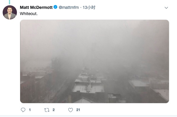 伴随着致命低温的还有疯狂的暴风雪。据美国有线电视新闻网(CNN)描述,“这一瞬间还能够看到前方的路,下一瞬间却只能看到自己的双手”,“再过几分钟,世界又恢复清晰了”。