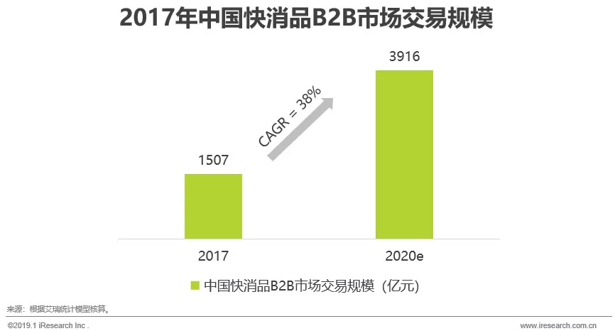2017年,中国快消品B2B市场交易规模为1507亿元,市场发展空间广阔。
