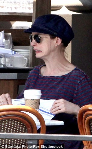 与一位年长朋友一起坐在餐馆里的安妮扮起了鬼脸,随后露牙大笑。这般糊涂的模样在一天前可并没有展现出来,当时安妮在东村被拍到。那时她的头发同样盘在脑上,太阳镜也戴在其位,不过整套服装却更加昂贵别致。黑色上衣之外,这位奥斯卡奖得主穿着一件装点着橙黑两色的及膝奶油色披风。