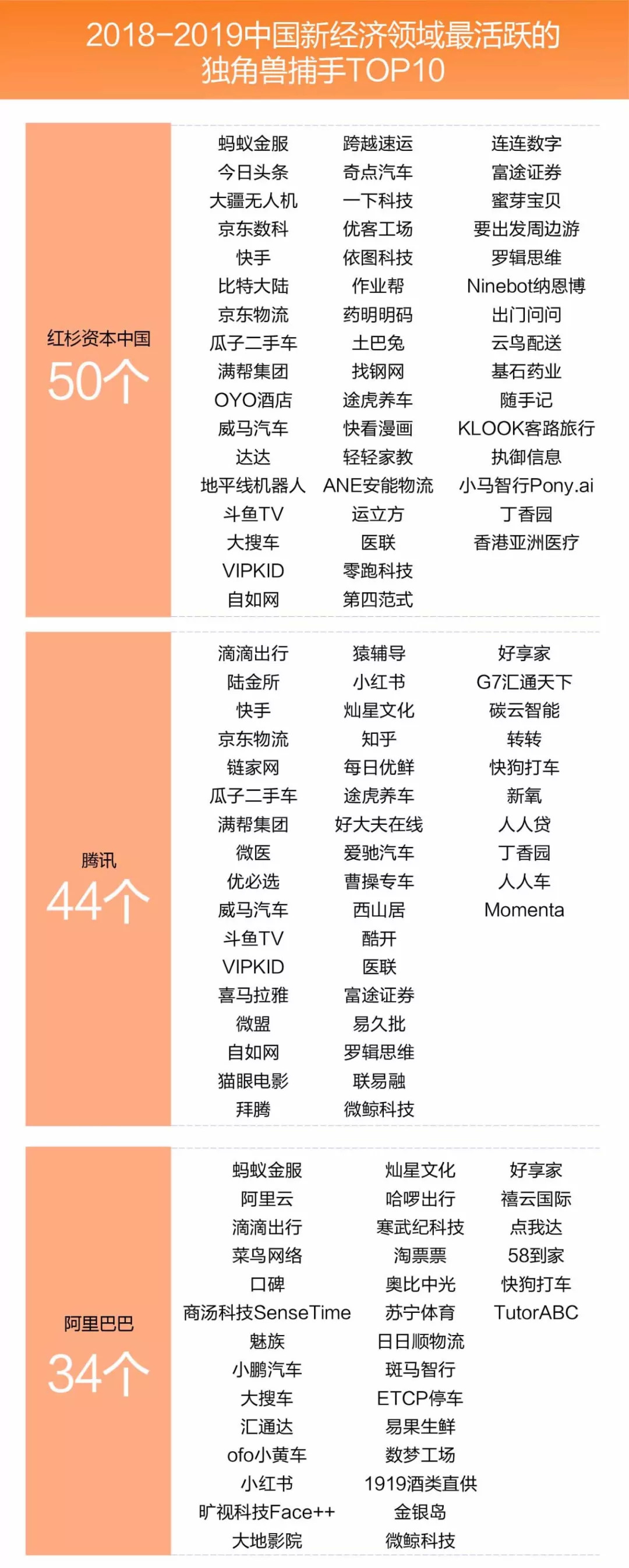 五、独角兽捕手观察:红杉中国仍是老大哥,腾讯阿里收获颇丰