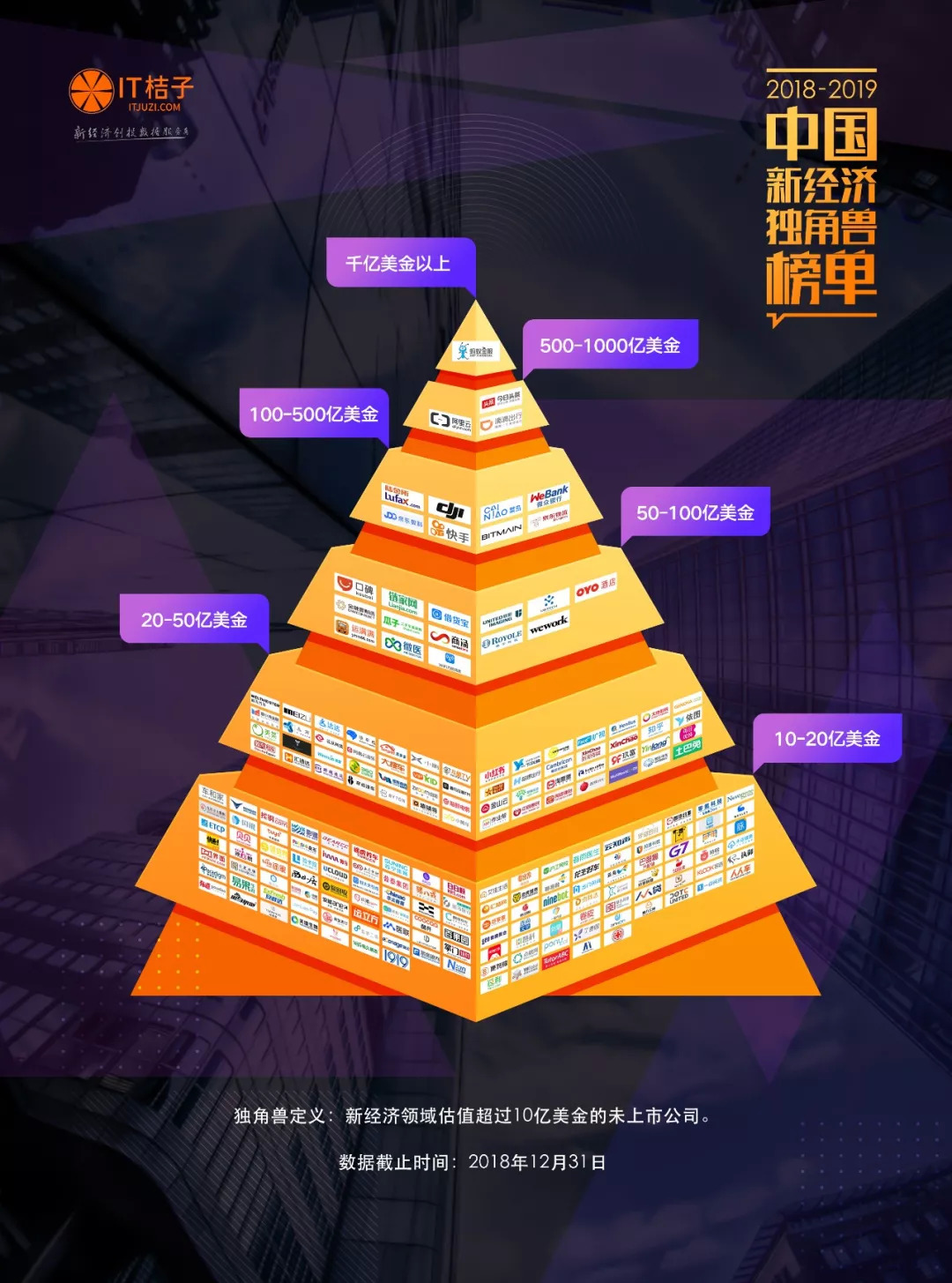 以下为 IT 桔子盘点与梳理的《2018-2019 年中国新经济独角兽俱乐部》解析。