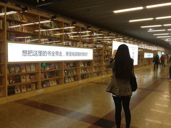 为了精准定位消费者的阅读喜好,推广kindle移动端,亚马逊为此打造“我的移动图书馆”,从kindle电子书中挑选公众最喜爱的图书名单,而最受欢迎的一千本图书最终会被展示在户外广告巨型书架上。
