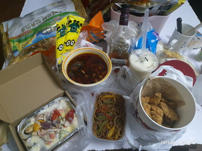 一个人的年夜饭~万能的外卖~但是不寂寞,因为有一群来着五湖四海的朋友,陪聊,抢红包,送祝福!