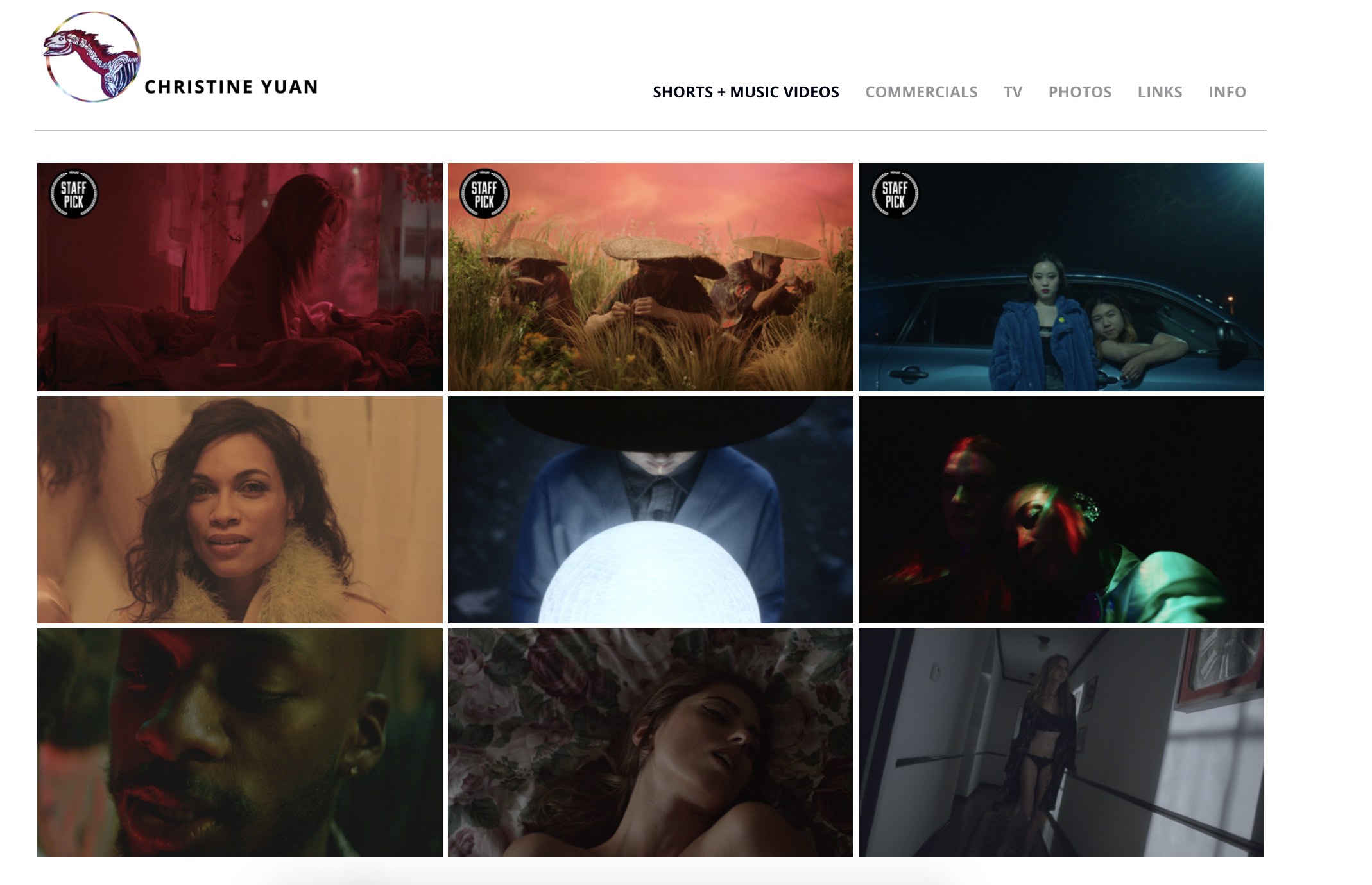 况且Prada的广告文案也表明主要意图在于向亚洲青年文化喝彩。这则广告由美籍华裔导演Christine Yuan指导完成,她是一名曾获得艾美奖提名的纪录片导演,作品以奇幻题材为主。她的个人网站和Instagram主页完全是Prada广告风格的直接体现。选择一位擅长在亚文化领域的华裔导演来进行拍摄,因此也不难理解广告为何会如此呈现。