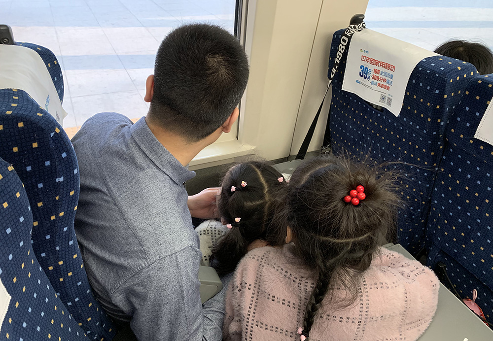 乘客秦先生老家在四川绵阳,今年带着老婆和两个女儿回绵阳跟父母一起过年。秦先生在河北邯郸从事房地产工作,认识了妻子定居邯郸。每年在哪里过年曾是他们最头疼问题,后来他们决定一年留在河北陪女方父母,一年回四川陪男方父母。“我也想把两边的老人都接到一起过年,但是现在条件不允许,只好拖家带口两边跑。等以后条件好了吧,大家就在一起过年。”秦先生说。