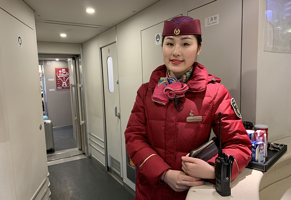 王丹2008年从铁路学校毕业后,经过了8轮面试进入铁路系统工作,先干了三年的乘务员,后面七年一直是乘务长。在动车组上,一个车长会负责管理四个乘务员,其中两个是餐吧工作人员,两个是车厢工作人员。王丹至今记得自己第一次春运值班,当时她还是跑成渝线的乘务员,负责的是5-8号车厢。“那时候不觉得辛苦,第一次嘛,更多的是兴奋和好奇,现在更多是责任了。”王丹说。