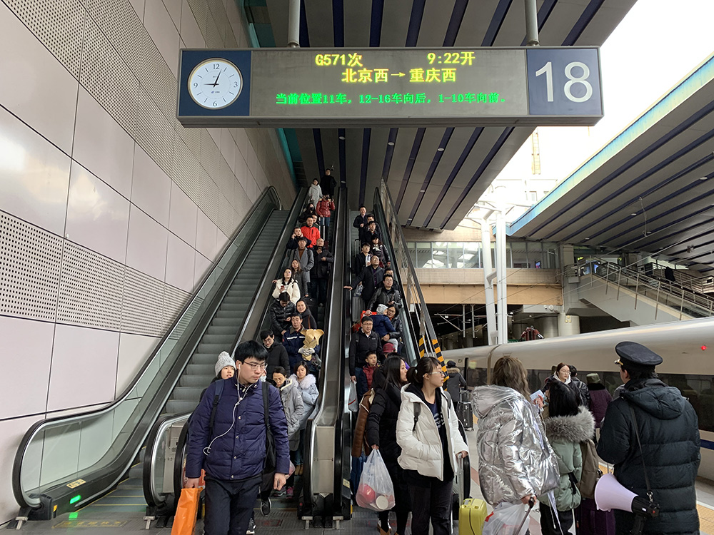 2019年1月31日,北京西站,在北京工作的彭女士将要乘坐G571回四川,该趟车途径四川抵达终点重庆,彭女士在江油站下车。