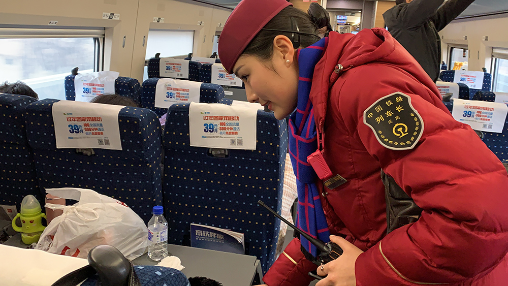 G571次列车的车长王丹已经是第十年服务春运了,而且当天恰好是她的生日。春运期间人手紧张,一般不会请假,所以她已经连续十年在车上度过生日了。