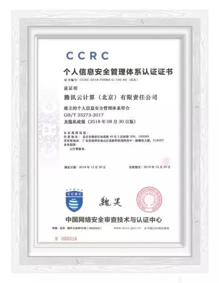 而腾讯云方面,据了解,从开始落地践行国家标准,到最终通过国家检测认证机构的现场审核,并以云计算服务的认证范围,获得全国首批云服务商认证证书,历时近一年时间。