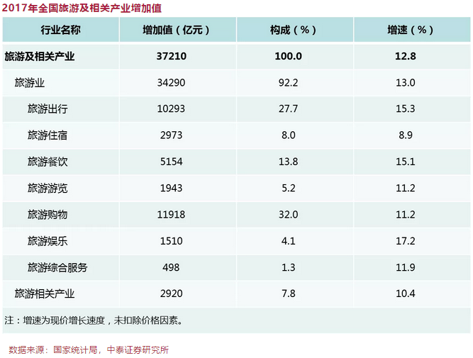 从分项数据看,2017年旅游出行(交通)增加值增长了15.3%,但2017年我国作为交通载客主体的公路客流量出现了负增长,导致包括公路、铁路、水运、航空等在内的总客流量10多年来首次出现负增长。如2017年春节假期,全国旅客发送量4.08亿人次,仅比2016年同期增长2.1%,2018年春节全国旅客发送量则首次出现了负增长。2019年春节假期已经来临,大家可以拭目以待,毕竟交通部门数据的可信度更高些。