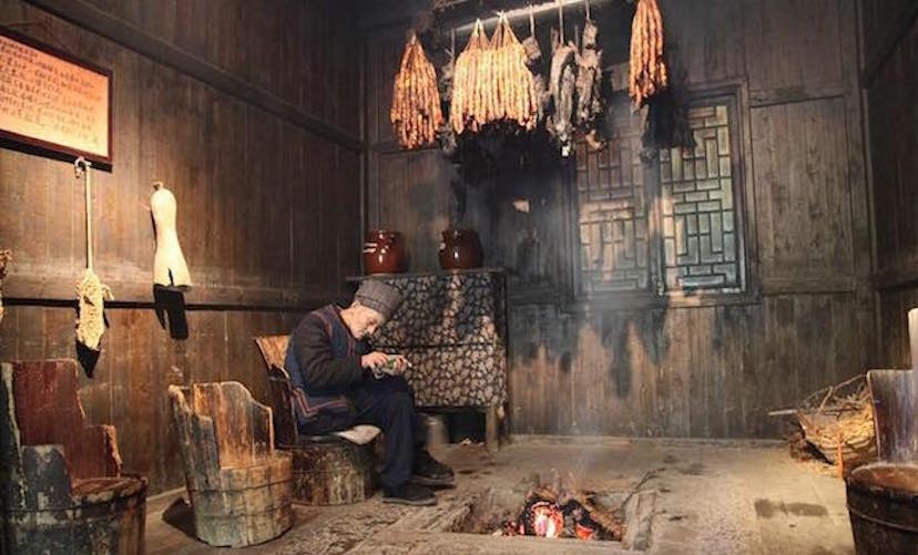 在大部分湖南人的心中,一块好腊肉,还得是乡下亲戚熏出来的。湖南冬天多阴雨,腊肉挂外头易坏,往往会挂在我们称作柴火屋的地方。柴火屋或点着一团柴,或烧着一盆炭,湖南人认为烤这种火比电暖炉管用,几只脑袋凑在一起,在满屋的腊肉下扯闲谈,肉香幽幽环绕。