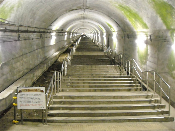 土合站是日本最深的地下车站,位于地下70米深处(上海最深的地下车站淮海中路站埋深为33米)。