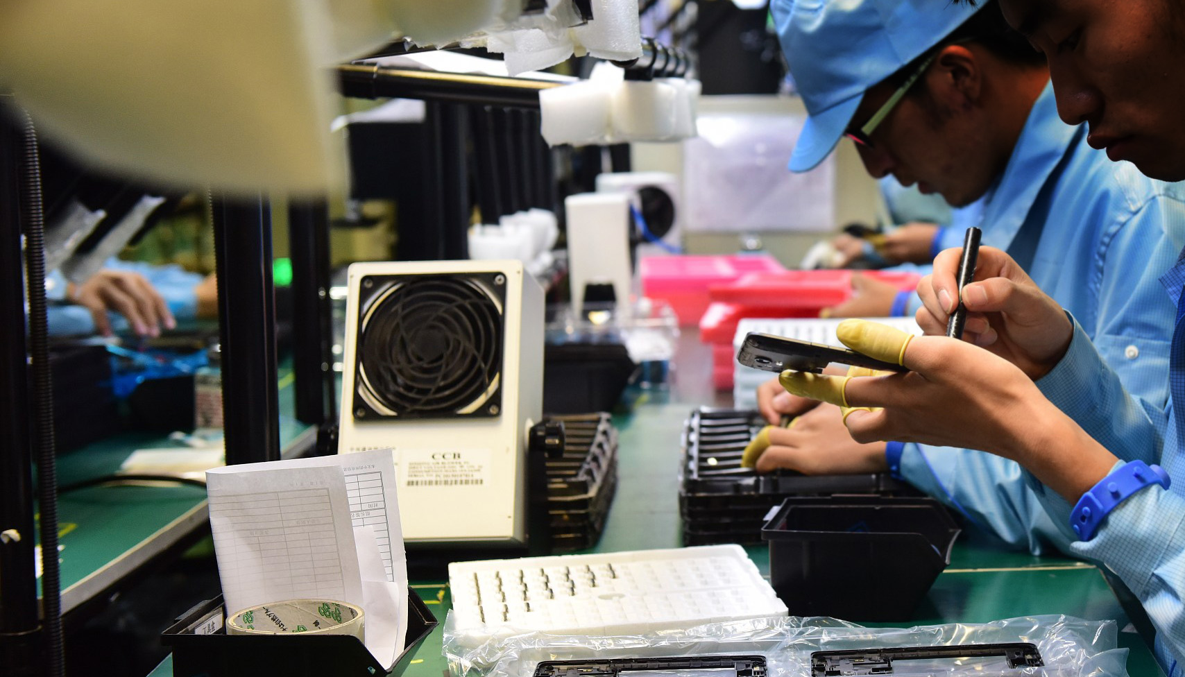 但是在产线,正常下班的情况基本不存在。张建说,一直到2016年底,下班时间基本都到8点半。如果不顺利,晚上做到9、10点也是可能的。