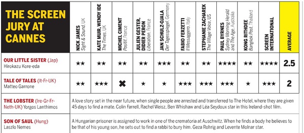 场刊评分更新,《龙虾》《索尔之子》能拿到多少分?