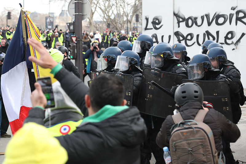 据美联社和法新社报道,当天多数示威者是和平参与的。但有部分示威者企图袭击法国国民议会(French National Assembly) 并进入了议会外围。其中更有示威者不停向防暴警察投掷各种物体和碎片,而防暴警察则以催泪瓦斯和眩晕手榴弹回击。