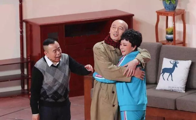 葛优先是给了蔡明一个长久的拥抱,然后亲切地喊了声“妈妈”,全场大笑。
