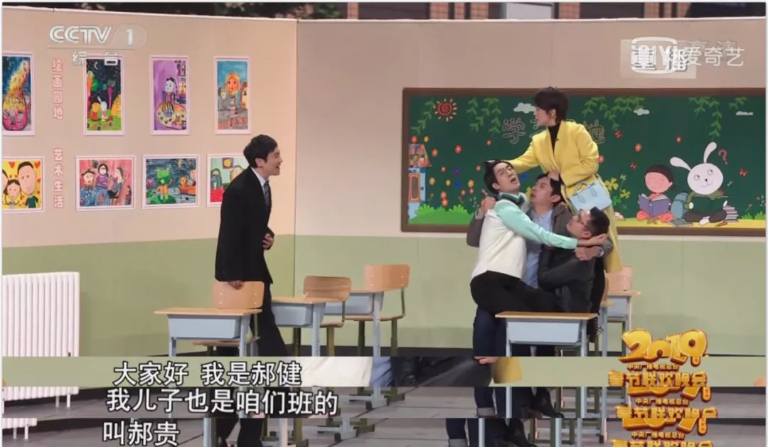 近年来,沈腾频繁地出现在话剧舞台之外的电影、综艺、社交平台中。他在今年的春晚小品《占位子》自我介绍:“大家好,我是郝健。我儿子也是咱班的,叫郝贵。”瞬间将全国观众的记忆拉回到2012年的新春夜晚,那是“郝建”在荧幕上的首次亮相,“打败你的不是天真,是无鞋(无邪)”也因此成为传播广泛的网络段子。