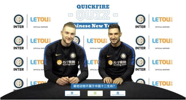 而国米则是用知识问答来达成目的。视频中国米球星们面对各种有关春节的问题,选出了自己认为正确的答案。问题中“羊、猫、龙,哪一个不属于中国十二生肖”“中国新年持续的时间是5天、10天还是15天”……这些都把球星们难住了。