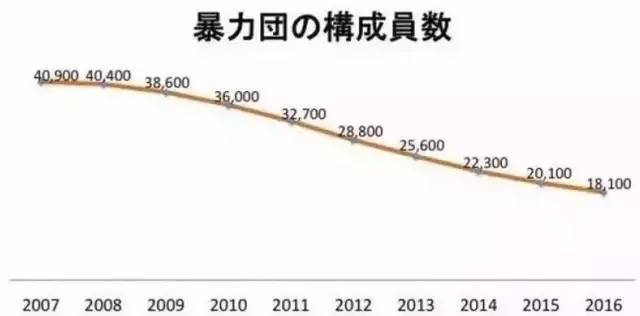 1963年,日本黑帮人数超过18万人,一度达到最高峰。到2016年年底,总人数只剩下18100人了。