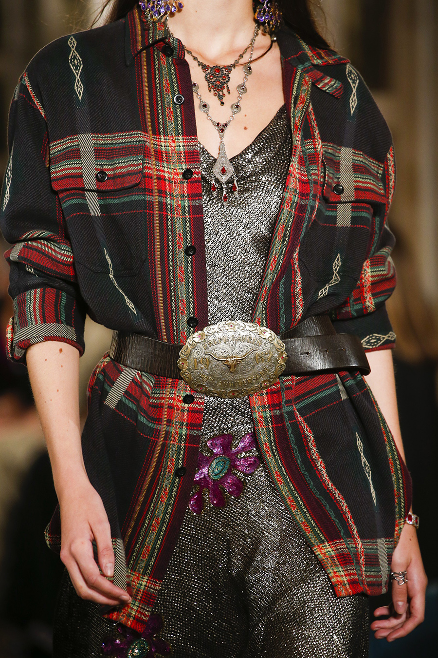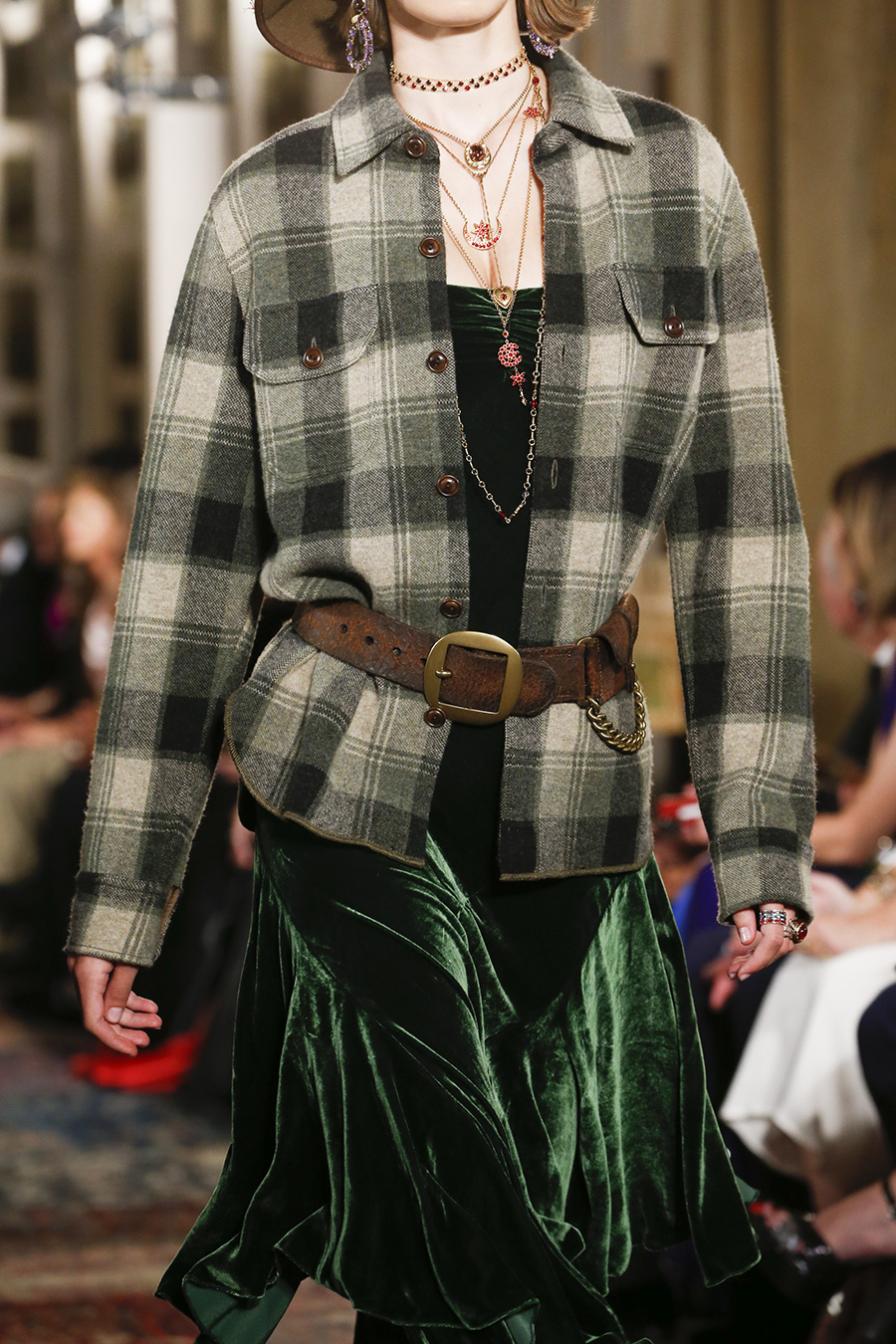 Ralph Lauran为50周年献礼的2018秋冬系列中,格纹和拼色图案也是绝对主角,材质则以法兰绒、灯芯绒和斜纹面料为主,搭配在一起能把人迅速拉回上世纪二、三十年代的美国,模特们仿佛都是从《了不起的盖茨比》中走出来的。Ralph Lauran的格纹要更加“重”,和色彩明亮的格纹西装相比要更雅致和古典。